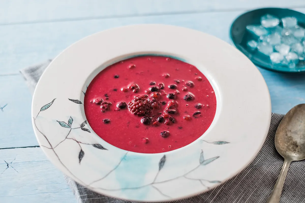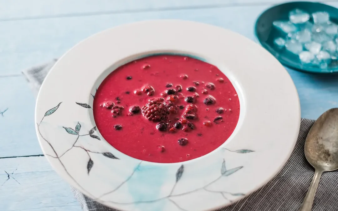 Zur Zubereitung der kalten Waldfruchtsuppe geben wir die entkernten Sauerkirschen in einen großen Topf und fügen so viel Wasser hinzu, dass es einen Liter ergibt. Wir geben die Gewürze hinzu, dann nach Geschmack Zucker und kochen alles 10 Minuten lang, bevor wir die Waldfrüchte hinzufügen. Nach 2 Minuten Kochzeit gießen wir die Kochsahne ein und rühren, bis die Suppe eindickt. Wir stellen den Topf in kaltes Wasser und wenn er lauwarm ist, stellen wir ihn bis zum Verzehr in den Kühlschrank.